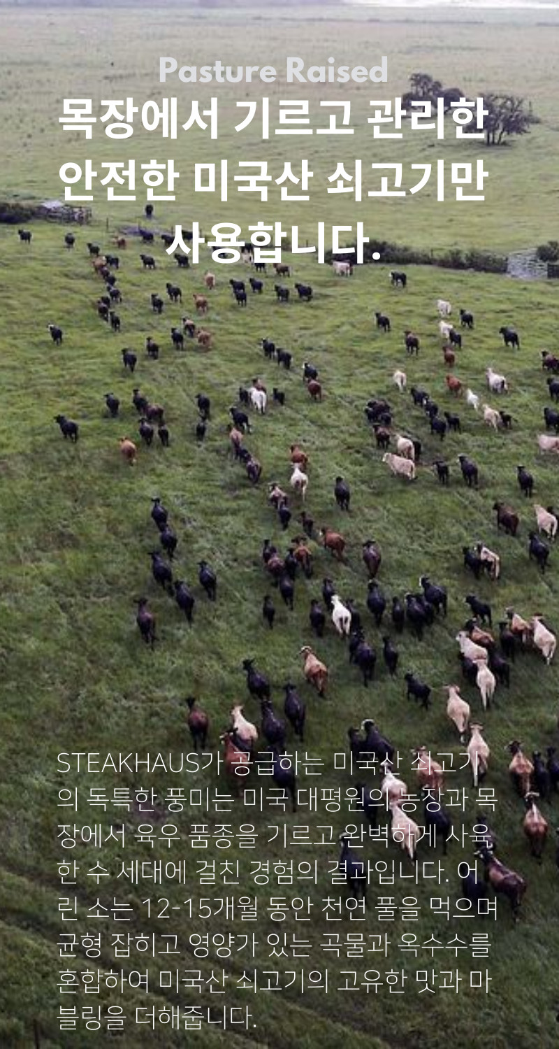 - 블랙앵거스 품종: 앞서 설명된 것처럼, 고품질의 풍미와 뛰어난 마블링을 가진 최상급 육우 품종입니다.